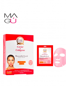 Mascarilla facial enriquecida con extracto de caviar y colágeno hidrolizado, que nutre e ilumina la piel. Hidrata, mejora la firmeza de la piel, mientras que acelera la renovación celular y previene los signos del envejecimiento.