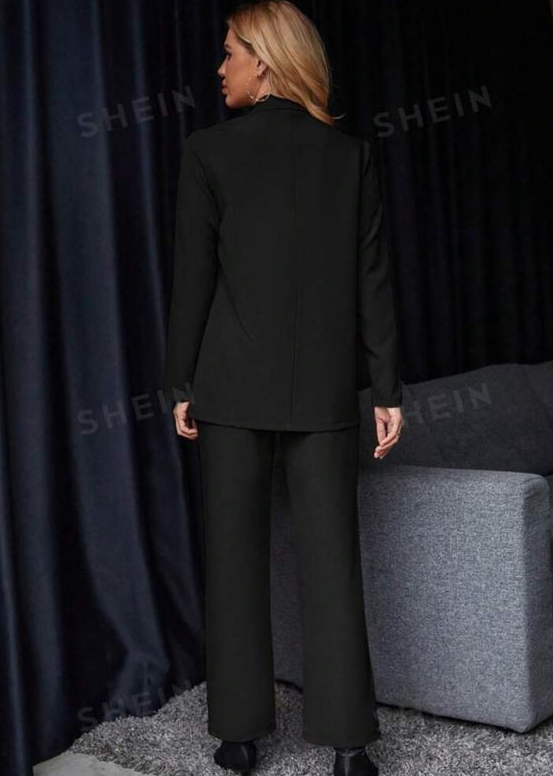 Conjunto Pantalones con blazer unicolor con botón delantero. Color negro. Talla M.