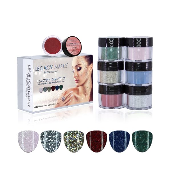 COLECCION DE POLVOS ACRILICOS Y DE INMERSION 2 EN 1 BEAUTIFUL DIAMONDS LEGACY NAILS