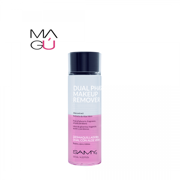 Desmaquillante dual con extracto de áloe que remueve suave y efectivamente el maquillaje de rostro y labios dejando la piel limpia, fresca y sin efecto graso.