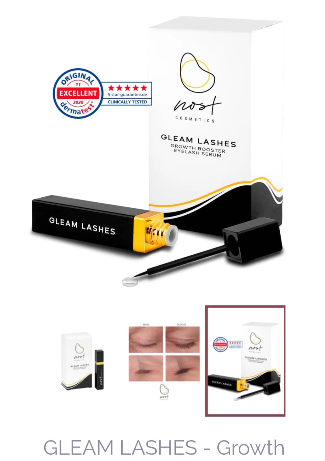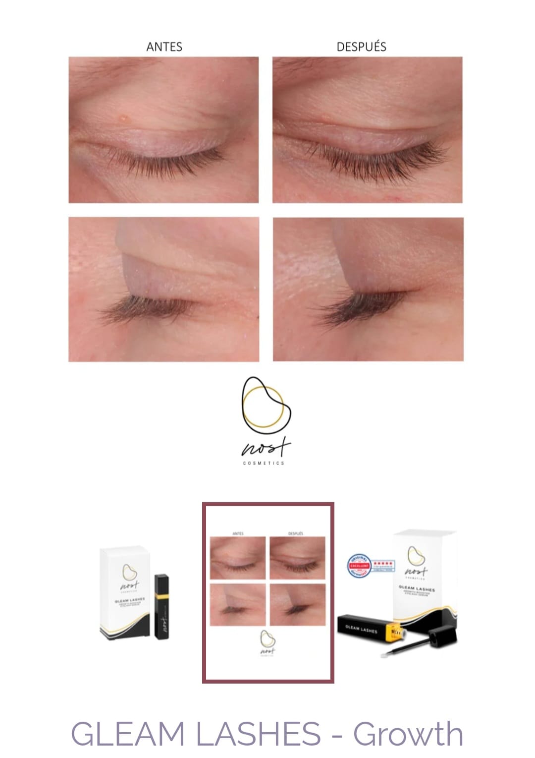 GLEAM LASHES es un tratamiento para el crecimiento y cuidado de las pestañas.