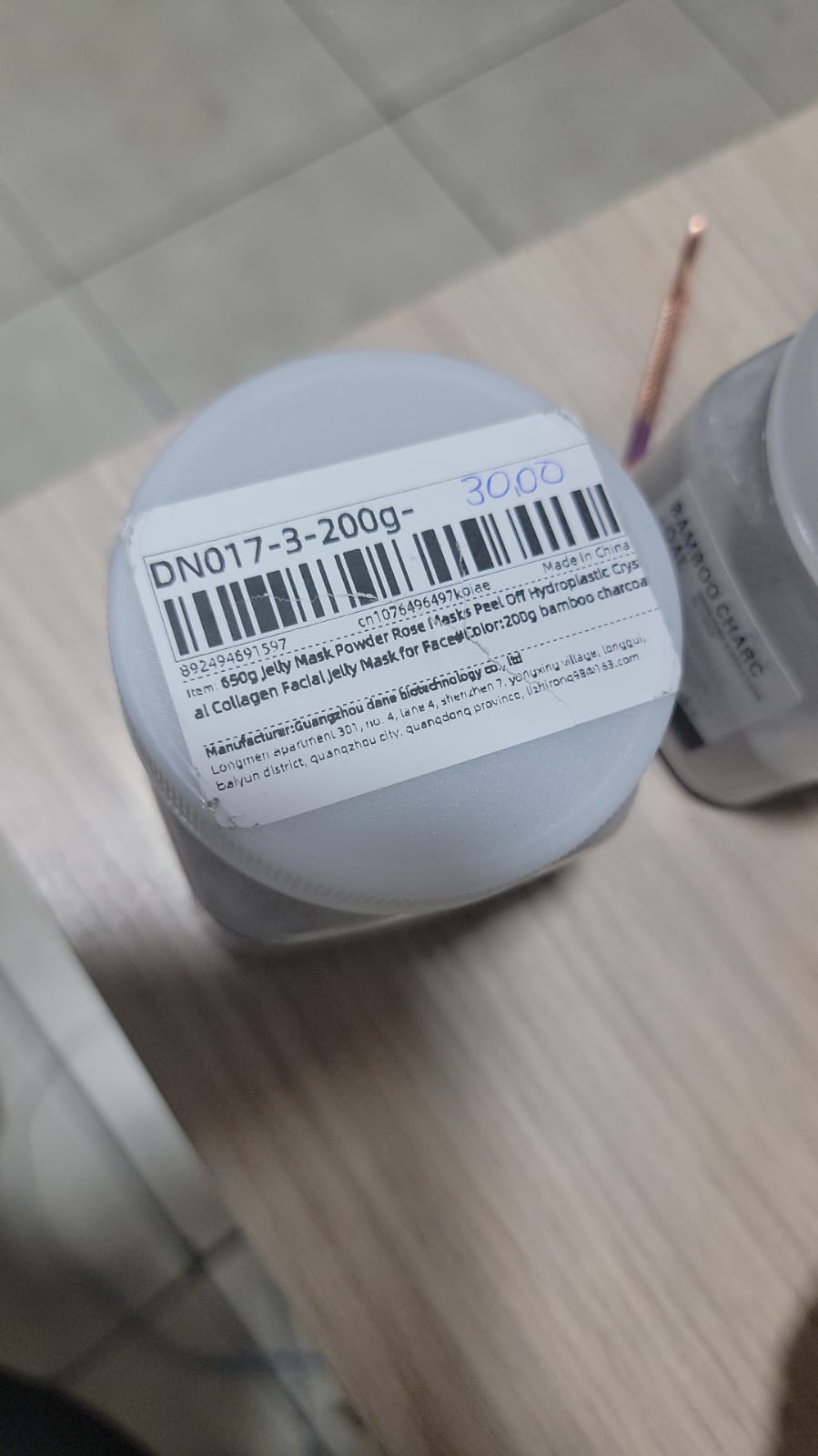 Almidón de Zea Mays, Carbón de bambú, Alginato de sodio, Altodextrina, Ácido kójico, Arbutina, Extracto de colágeno, Ácido hialurónico, Betaína, Pétalo de rosa, Glutatión, Extracto de Glycyrrhiza Uralensis (regaliz), Tocoferol, Retinol, Acetil hexapéptido-8, Fullerenos, Polvo de raíz de Panax Ginseng, Polvo de flor de Carthamus Tinctorius (cártamo), Polvo de flor de Lavandula Angustifolia (lavanda). Aroma, Extracto de Flor de Rosa