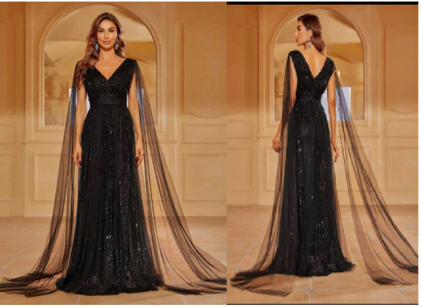Vestido de vestir con lentejuela en contraste con malla color negro talla xs